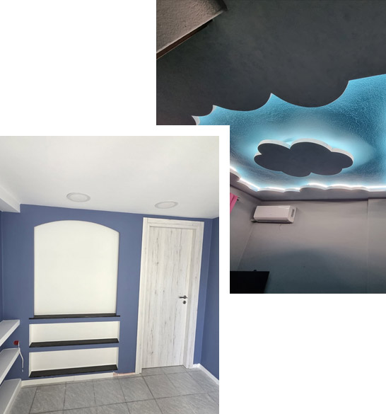 We study each space individually and adapt our solutions according to the requirements and budget. From residential to commercial spaces, the plasterboard structures we offer can upgrade the quality of your life and work.D